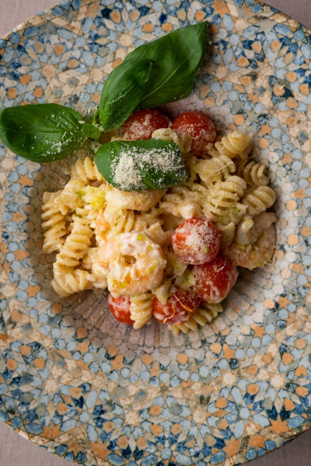 Фузилли с креветкой и черри