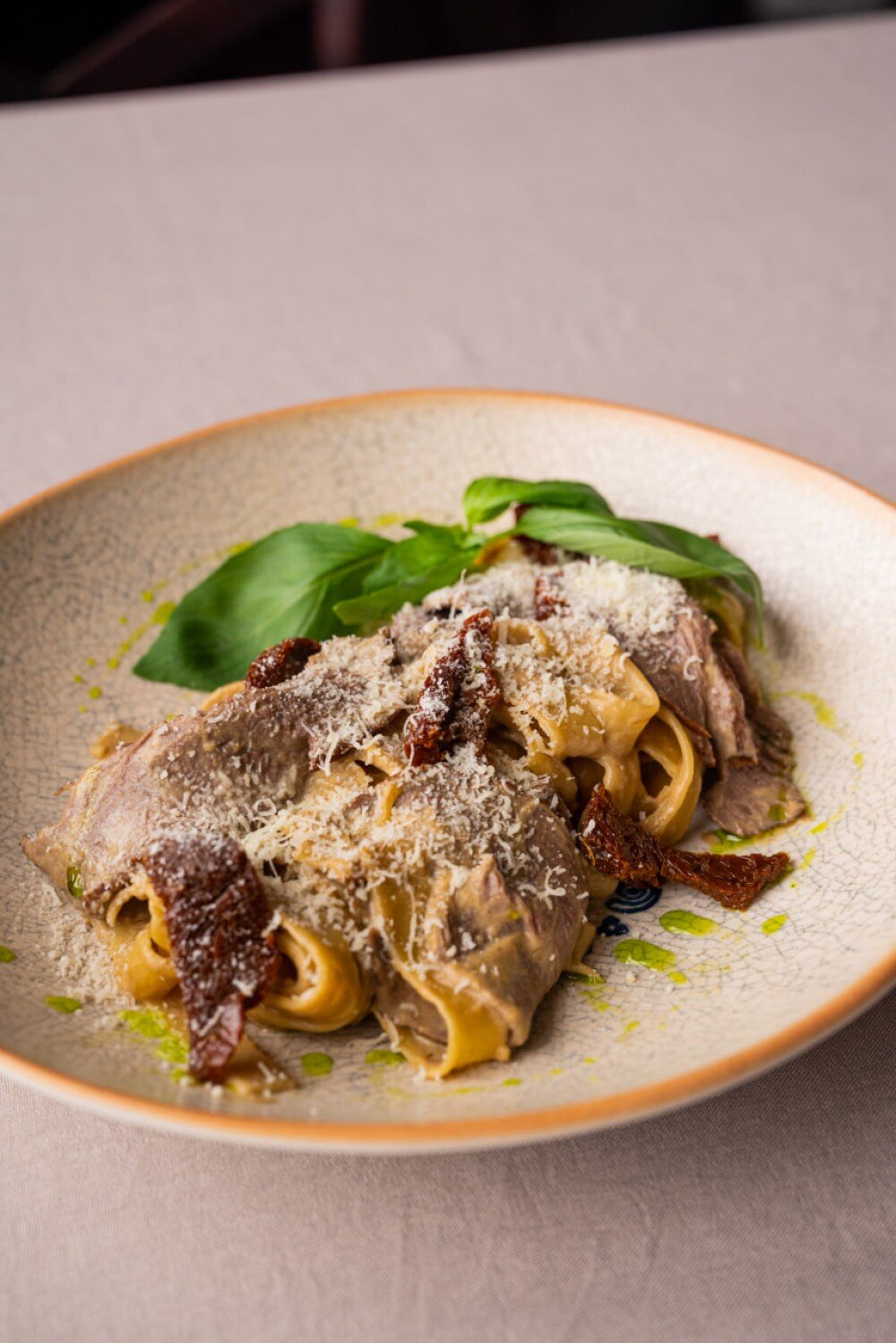 Фетучини с ростбифом и соусом из белых грибов